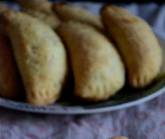 •ضعى فى منتصف كل قطعة معلقة صغيرة من الحشوة ثم أغلقيها على شكل هلال واختمى الأطراف بشكل جيد و باستخدام الشوكة زينى أطراف الكليجة .