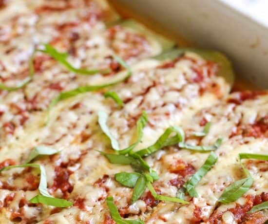 مقادير الحشوة :- <br /> • 1 معلقة صغيرة زيت زيتون<br /> • 2 كوب سبانخ مفرومة <br /> • 3 فص ثوم مفروم<br /> • 1/3 كوب بصل مفروم<br /> • 1/3 كوب فلفل أحمر حلو مفروم<br /> • ملح <br /> • 3/4 كوب جبن ريكوتا خالية من الدسم <br /> • 1/2 كوب جبن بارميزان مبشورة <br /> • 1 بيضة <br /> • 4 أوراق ريحان مفرومة ( والمزيد للتزيين )<br /> مقادير صلصة المارينارا :- <br /> • 1 معلقة صغيرة زيت زيتون<br /> • 1 فص ثوم مهروس <br /> • 2/1 1 كوب طماطم مهروسة <br /> • ملح وفلفل أسود<br /> • 1 معلقة كبيرة ريحان مفروم<br /> • 4 حبة كوسا متوسطة الحجم <br /> • 1 كوب جبن موتزريلا ( خالى الدسم )طريقة التحضير :