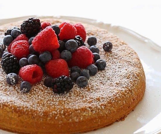 • 3 بيضات مفصولين فى درجة حرارة الغرفة • 3 بياض بيض فى درجة حرارة الغرفة • 2/3 كوب سكر • 1 ملعقة صغيرة فانيليا سائلة • رشة ملح • 2 كوب ( 200 جرام ) دقيق اللوز • 1 كوب توت مشكل • سكر بودرة للتزيين ( اختياري )طريقة التحضير :