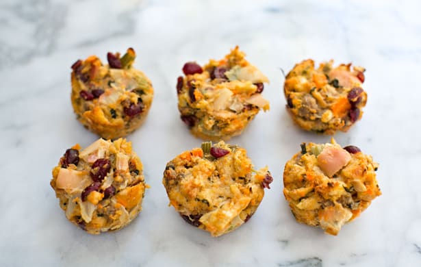 • 1 كيس من شرائح التوست المقطع مكعبات • 1/2 كيلو سجق مفروم أو لحم مفروم ( اختياري ) • 8 ملعقة كبيرة زبدة • 1 كوب مكعبات بصل • 2 كوب بطاطا حلوة مقطعة مكعبات • 2 كوب تفاح مقطع مكعبات • 2 كوب مكعبات كرفس • 1 كوب بقدونس مفروم • 2/1 1 ملعقة صغيرة مرمية مفرومة • 2/1 1 ملعقة صغيرة أوريجانو مفروم • 2/1 1 ملعقة صغيرة زعتر مفروم • 1 كوب توت برى مجفف • 2 كوب مرق دجاج بدون ملح • 3 بيضة • ملح وفلفل أسود حسب الذوقطريقة التحضير :