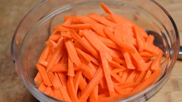 قطعي شرائح الجزر إلى أعواد طولية رفيعة.