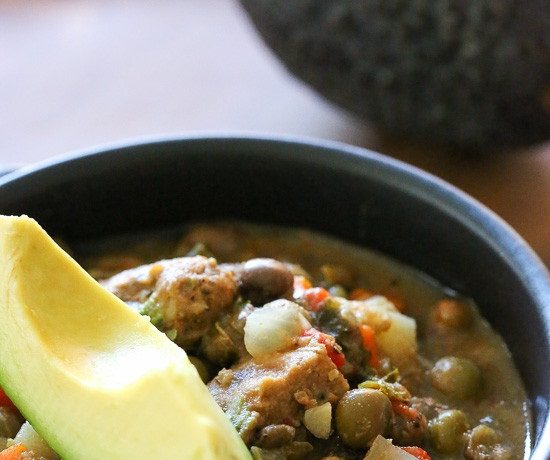 • 1 كيلو سجق مقطع • 1 ملعقة صغيرة زيت زيتون • 1/2 ملعقة كبيرة أعشاب مجففة • 1/4 ملعقة صغيرة كمون • 1/2 ملعقة صغيرة ملح • 1/4 ملعقة صغيرة فلفل أسود • 1/2 ليمونة معصورة • 2/1 1 ملعقة صغيرة بهارات مشكلة • مقادير المرق :- • 2 علبة بازلاء مجففة • 1 بصلة صغيرة مفرومة • 4 فص ثوم مهروس • 1 كوب مكعبات الفلفل الأحمر الحلو • 1 ملعقة كبيرة فلفل أخضر حار مفروم • 1/2 كوب صلصة طماطم • 2 ملعقة كبيرة زيت زيتون • 2/1 1 كوب من مكعبات البطاطا • 1 جزرة مقطعة الى مكعبات • 1 ساق كرفس مقطع مكعبات • 2 كوب خضروات مثل السبانخ أو السلق • 1 كوب ماء