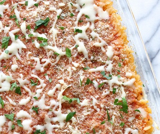 • 2 كوب أرز طويل الحبة <br /> • 4/3 1 معلقة صغيرة ملح<br /> • 200 جرام لحم مفروم بدون دهون<br /> • 200 جرام لحم الديك الرومى المفروم بدون دهون<br /> • 1/4 كوب بصل مفروم<br /> • فلفل أسود حسب الذوق<br /> • 1 كيس بازلاء مجمدة <br /> • 2 كوب صلصة طماطم <br /> • 1 بيضة كبيرة + 1 بياض بيضة <br /> • 1/2 كوب جبن رومى أو بارميزان مبشورة <br /> • 1 كوب جبن موتزريلا <br /> • زيت سبراى للطبخ<br /> • 4 ملعقة كبيرة بقسماط ( فتات الخبز ) متبل<br /> • بقدونس أو رريحان مفروم للتزيينطريقة التحضير :