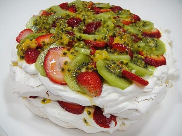 ملاحظة لذيذة : يجب أن تكون البافلوفا طرية من المنتصف ومقرمشة من
