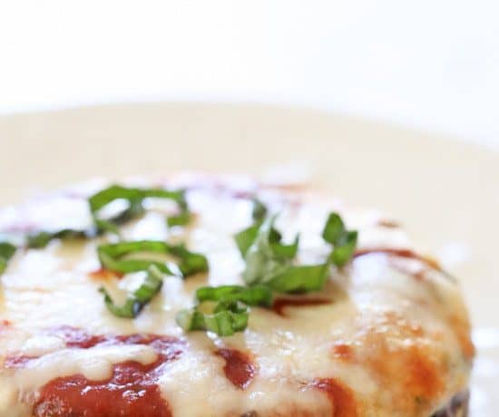 • 1 ملعقة صغيرة زيت زيتون • 2 كوب سبانخ مفرومة • 3 فص ثوم مفروم • 1/3 كوب بصل مفروم • 1/3 كوب فلفل أحمر حلو مفروم • ملح وفلفل اسود حسب الذوق • 3/4 كوب جبن ريكوتا خالى الدسم • 1/2 كوب جبن بارميزان مبشورة • 1 بيضة كبيرة • 4 ورقة ريحان مفرومة • 4 فطر بورتوبيللو كبير الحجم • 1/2 كوب صلصة مارينارا • 1/2 كوب جبنة موتزريلا خالية الدسمطريقة التحضير :