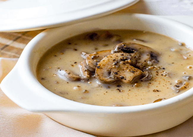 ربع كوب زبدة 2 كوب فطر مقطع 3 ملاعق كبيرة عصير حامض 3 كوب مرقة دجاج كوب كريمة بصلة مفرومةطريقة التحضير :