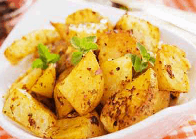 بالزبدة وتوضع الصينية فى فرن لمدة ¼ ساعة أو حتى تنضج البطاطس وتحمر من الوجه