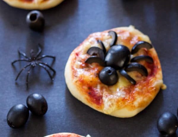 . زيني البيتزا بالزيتون الأسود ( قطعيه الزيتون إلى شرائح رقيقة جدا ثم ضعي زيتونة واحدة في منتصف البيتزا ونصف حبة زيتونة فوقها ثم رصي شرائح الزيتون الرقيقة على جانبي الزيتون لتصبح شكل عنكبوت).