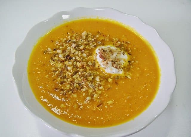 قدمى شوربة الجزر وزينيها بالدقة واللبن الزبادى .