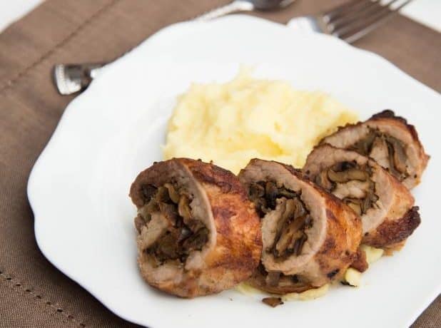 • 450 جرام مشروم • 2 ملعقة كبيرة زيت زيتون • 1 حبة بصل متوسطة الحجم • 750 جرام لحم بقري (شريحة كبيرة ورقيقة ) • 1 ملعقة كبيرة ملح • 1 ملعقة صغيرة بقدونس طازج أو مجفف • ملح وتوابل حسب الذوقطريقة التحضير :