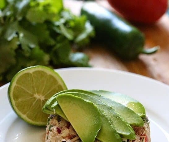 اقلبي التونة على طبق التقديم وزينيها بشرائح الأفوكادو وقدميها فورا
