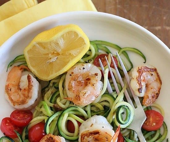 • 2/1 1 ملعقة صغيرة من زيت الزيتون • رشة من رقائق الفلفل الاحمر الحار • 2 فص ثوم مقطع شرائح رقيقة • 1 خيار متوسط الحجم • رشة ملح وفلفل أسود • 1/4 عصير ليمونة • 1/4 كوب طماطم كرزية • 100 جرام روبيان مقشرطريقة التحضير :