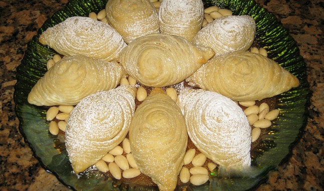 • مكونات خليط الخميرة :- • 1 ملعقة صغيرة خميرة جافة نشطة • 1 ملعقة صغيرة سكر • 1 ملعقة كبيرة طحين • 1/3 كوب ماء دافئ • مكونات العجينة :- • 1 بيضة فى درجة حرارة الغرفة • 1 صفار بيض • قليل من الملح • 1 ملعقة كبيرة فانيليا • 1 كوب زبدة دافئة ( حوالى ربع كيلو ) • 1 كوب حليب دافئ • 5 كوب طحين • مكونات الحشوة :- • 450 جرام لوز مقشر • 450 جرام سكر • 1 ملعقة صغيرة هيل مطحون • 1 ملعقة كبيرة فانيليا • مكونات أخرى :- • 1 كوب زبدة مذابة • 1 ملعقة كبيرة سكر بودرةطريقة التحضير :