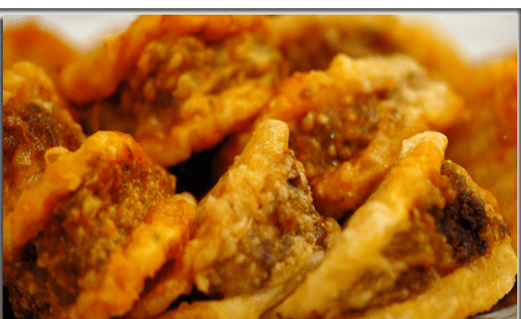 – تغطى حبات البطاطا المحشوة بالدقيق ثم البيض