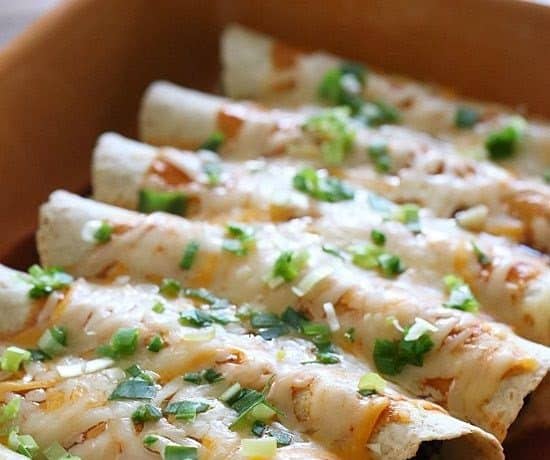 • 1 كوب صلصة الانشيلادا الحمراء • 1 ملعقة صغيرة زيت زيتون • 2/1 2 كوب من مكعبات اليقطين • ملح وفلفل أسود حسب الذوق • 1 بصلة صغيرة مقطعة مكعبات • 3 فص ثوم مفروم • 1 فلفل أخضر مخلل مفروم • 1 علبة طماطم مفرومة مع ماؤها • 2/1 1 كوب من الفاصوليا الحمراء المعلبة • 1/4 كوب كزبرة مفرومة • 1 ملعقة صغيرة كمون • 1/2 ملعقة صغيرة مسحوق الفلفل الاحمر الحار • 1/4 كوب ماء • 8 رقاق طرى متوسط الحجم أو تورتيلا القمح الكامل • 1 كوب جبن مبشور قليل الدسم • 2 ملعقة كبيرة بصل أخضر للتزيين • ساور كريم للتقديم ( اختياري )طريقة التحضير :