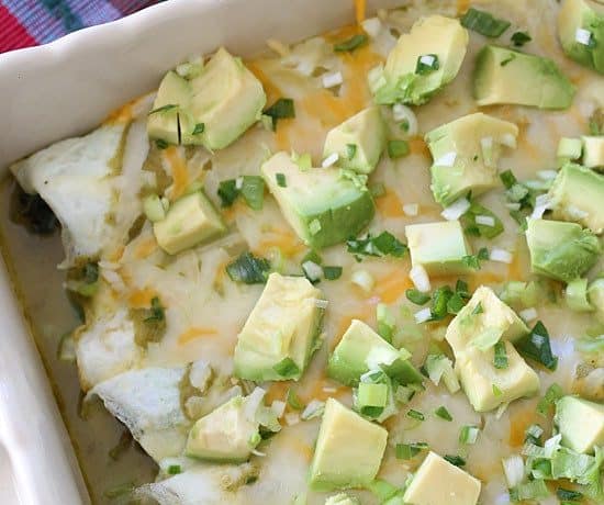 • 3 كوب بياض بيض ( من 18 بيضة كبيرة ) • 2 ملعقة كبيرة ماء • ملح وفلفل أسود حسب الذوق • 1 ملعقة صغيرة زيت زيتون • 1/2 كوب بصل أخضر مفروم + المزيد للتزيين • 1 حبة طماطم مقطعة مكعبات • 2 ملعقة كبيرة كزبرة مفرومة • ملح وفلفل أسود • 280 جرام سببانخ مجمدة • 100 جرام فلفل أخضر مفروم ( اختياري ) • 2/1 1 كوب من الجبنة المبشورة القليلة الدسم • 1 كوب صلصة الانشلادا الخضراء • 1 حبة أفوكادو متوسطة مقطعة مكعبات