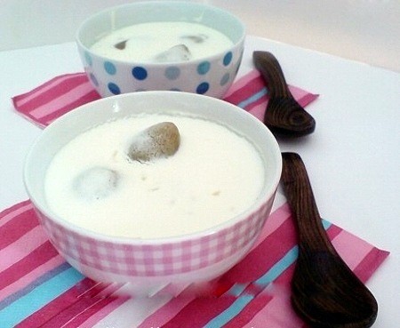 عندما يغلى اللبن وتظهر الفقاعات أضيفي الماء واستمرى فى التقليب على