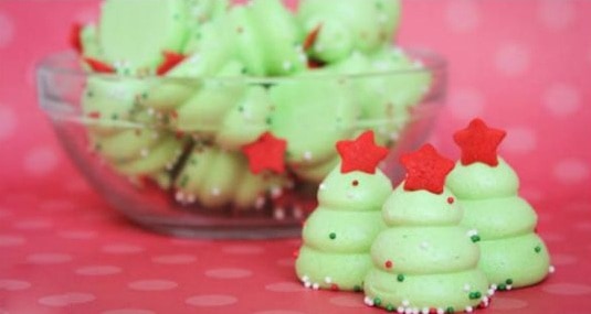 • كوب سكر بني • 4 بياض بيض ( كبير الحجم وليست طازجا ) • 4/1 ملعقة صغيرة ملح • ملعقة صغيرة فانيليا سائلة • ملعقة كبيرة + 2 ملعقة صغيرة نشا •بضع قطرات من ألوان الطعام (لون أخضر) •سكاكر على شكل نجوم •شوكولاتة فارمسيلي ملونةطريقة التحضير :