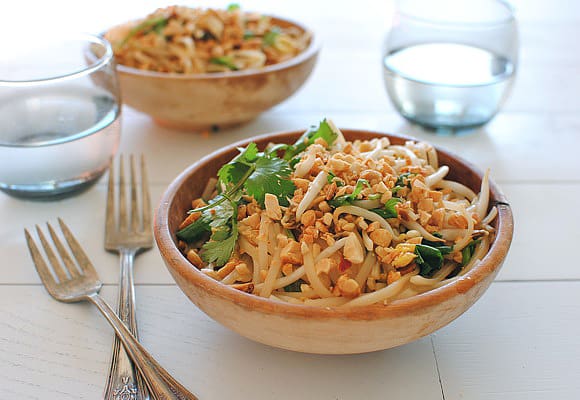 - نودلز الأرز التايلندي - 1 ملعقة كبيرة زيت زيتون - 2 حبة بيض - 3 ملاعق كبيرة صوص الصويا - 1 ملعقة كبيرة صوص السمك - 2 ملعقة كبيرة عصير ليمون - 2 ملعقة كبيرة زيت - 2 ملعقة كبيرة سكر بني - 2/1 ملعقة صغيرة هريسة الفلفل الأحمر - 1 كوب براعم الفاصوليا الطازجة أو أي نوع خضار مفضل لديكِ - 1 كوب كزبرة خضراء - 3 حبات البصل الأخضر مقطع رقيقة - 2/1 كوب فول سوداني مفرومطريقة التحضير :
