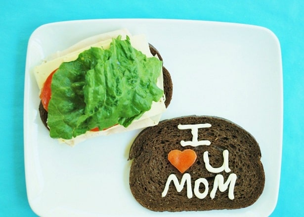 الفكرة الأهم هى كتابة كلمة أحبك أمى l love u mom باستخدام المايونيز .