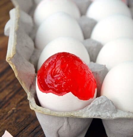 • جيلي فراولة بارد • علبة كارتون بيض المعدات : • دبوس • قمع ضيق الثقبطريقة التحضير :