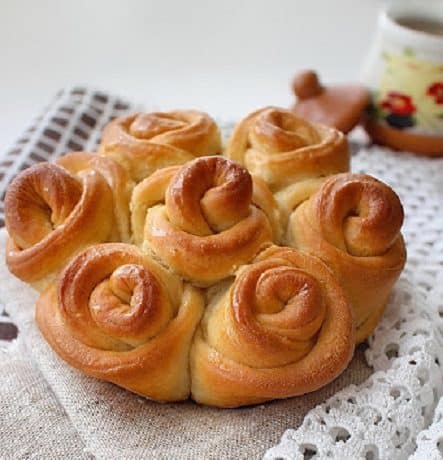 . طريقة أخرى للخبز : رصي وردات العجين في صينية خبز دائرية مدهونة بقليل من الزيت ثم اخبزيها في الفرن حتى يصبح سطحها ذهبياً، عند التقديم أضيفي العسل على سطحها وتناوليها دافئة.