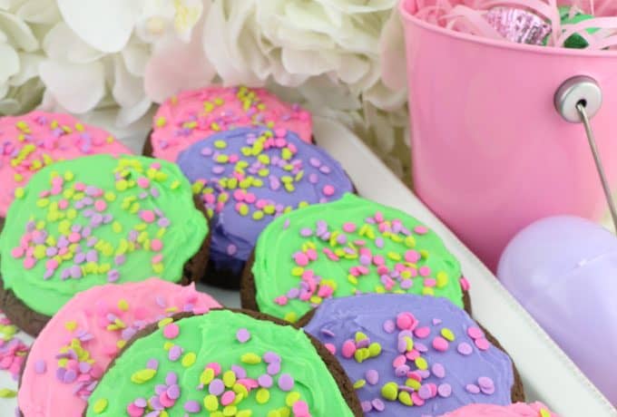 قدمي كوكيز الشوكولاتة الملونة في الربيع.