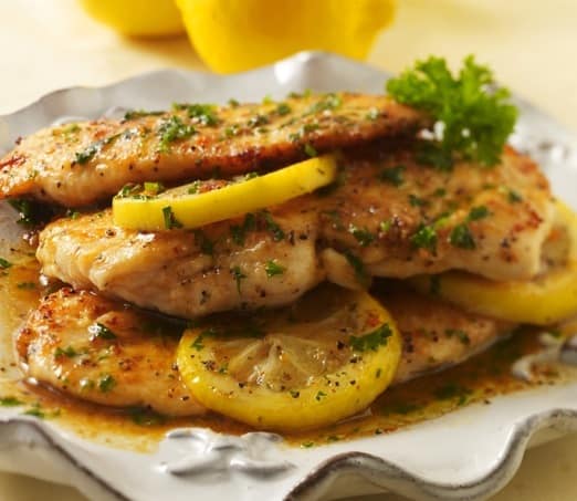 • 1/2 كيلو دجاج فيليه • 1 ملعقة صغيرة ملح • 1 ملعقة صغيرة فلفل اسود • 1 ملعقة صغيرة زعتر • 1 ملعقة صغيرة بودرة بصل • 1 ملعقة كبيرة دقيق • 1/4 كيلو مشروم مقطع • صوص ديمجلاس • 2 فص ثوم • 1 حبة بصل مقطعهطريقة التحضير :