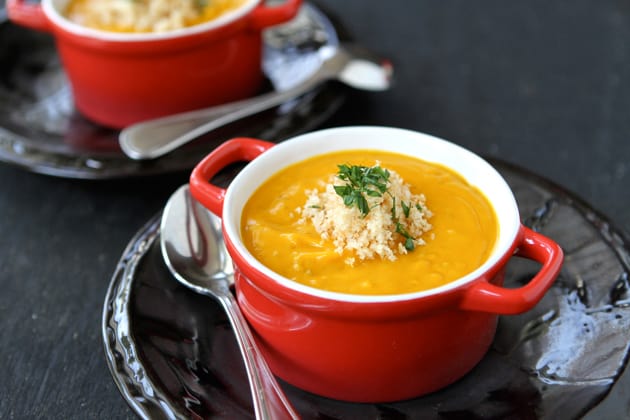 • 1حبة بصلة متوسطة مبروشه ناعم • 1فص ثوم • 1 حبة بطاطا • 2 حبة جزر متوسطة الحجم • 2 كوب مرقة دجاج • 2 كوب ماء • 1 ملعقة كريمة خالية الدسم • 1 ملعقة كبيرة زبدة • ملح • قرفة • زنجبيل مطحون • فلفل اسود • بقدونس للتزيينطريقة التحضير :