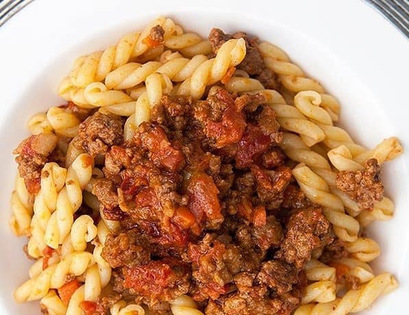 قدمي المكرونة بالصلصة مع مزيد من صلصة البولونيز