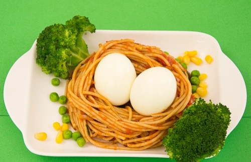 وجبة السباغيتى والبيض المسلوق بالصور