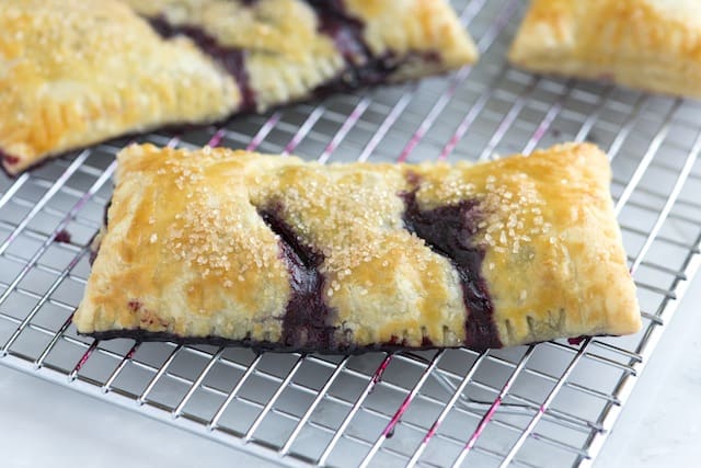 • 1 باكيت عجينة باف باستري • 2 كوب توت أزرق • 3 ملاعق كبيرة سكر حبيبات • 1/2 1 ملعقة نشا ذرة • 1 ملعقة كبيرة عصير ليمون • 1/4 ملعقة شاي زيت لوز حلو • ذرة ملح • 1 صفار بيضطريقة التحضير :