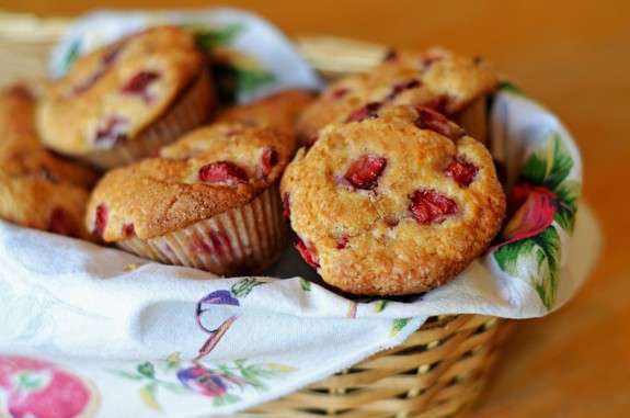 • 2 كوب + 2 ملعقة صغيرة من الطحين • 2 ملعقة صغيرة بيكنج بودر • 3/4 ملعقة صغيرة ملح • 1/2 كوب زبدة لينة • 1 كوب سكر بودرة • 2 حبة بيض • 2/1 1 ملعقة صغيرة من الفانيليا السائلة • 1/4 ملعقة صغيرة نكهة اللوز • 1/2 كوب حليب • 4/1 2 كوب من الفراولة المقطعة مكعبات صغيرة • 2 ملعقة كبيرة سكر بنىطريقة التحضير :