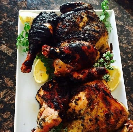 زينى الدجاج المشوى بأرباع الليمون وقدميه مع صلصة تشيميتشوري .