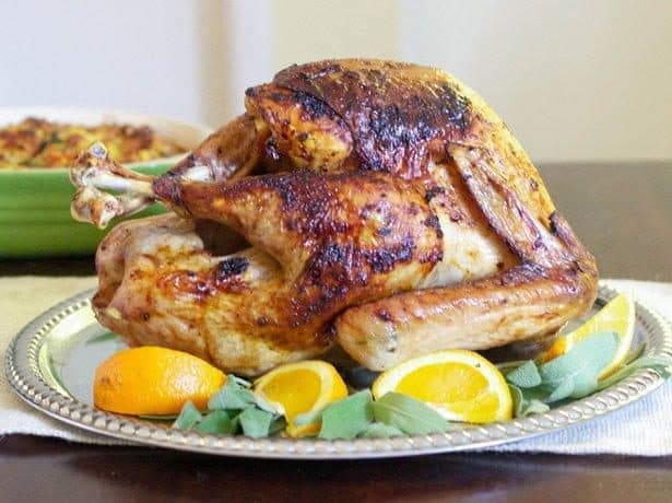 بحشو الدجاجه بين الجلد الخارجي واللحم بشرائح البرتقال .