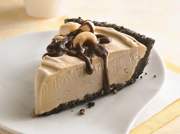 كوب ونصف بسكويت شيكولاتة مطحوننصف كوب زبدربع كوب جوز هند مبشور3 ملعقة كبيرة كاجو مطحونالحشو:4 كوب أيس كريم القهوةالتوبينج1 كوب شيكولاتة هيرشى او سايحةمكسرات حسب الرغبة