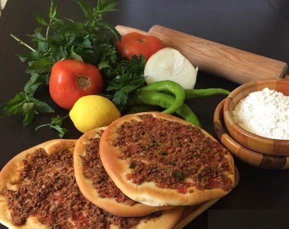 • مقادير الحشوة :- • ½ كيلولحم بقرى مفروم • 2 حبة طماطم صغيرة الحجم مفرومة • 1 فلفل أخضر حار صغير الحجم مفروم • ½ كوب بصل مفروم • 1 كوب بقدونس مفروم • 2 فص ثوم مفروم • 1 ملعقة صغيرة بابريكا • ½ ملعقة صغيرة مسحوق الفلفل الأحمر الحار • 1 ملعقة كبيرة دبس الرمان • 1 ملعقة كبيرة هريسة الفلفل الأحمر الحار • 1 ملعقة كبيرة معجون طماطم • ملح وفلفل أسود حسب الذوق • مقادير العجين :- • 4 كوب طحين • ملعقة كبيرة خميرة جافة فورية • 1 ملعقة كبيرة سكر • 1 ملعقة صغيرة ملح • 2 ملعقة كبيرة زيت زيتون • 2 كوب ماء دافئطريقة التحضير :