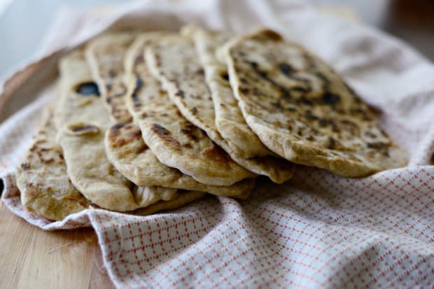 • 2 ملعقة صغيرة سكر <br /> • 6 ملعقة كبيرة حليب كامل الدسم <br /> • 2 ملعقة كبيرة ماء<br /> • 2/1 ملعقة خميرة جافة <br /> • 2/1 كوب زبادي كامل الدسم <br /> • 2 كوب طحين <br /> • 2/1 كوب دقيق القمح الكامل <br /> • 4/3 ملعقة صغيرة معجون خميرة <br /> • 2/1 ملعقة صغيرة بيكنج صودا <br /> • زبدة او سمنطريقة التحضير :
