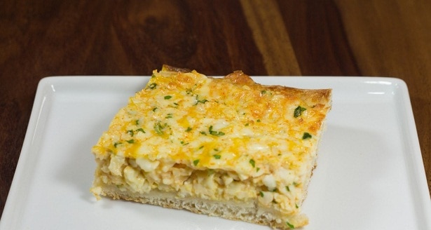 درجة حرارة 400 فهرنهايت لمدة 15 : 20 دقيقة أو حتى يذوب الجبن ويكتسب سطح الفطيرة