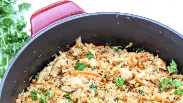 وصفة مصورة أرز القرنبيط بالدجاج