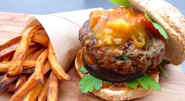 برجر مع البطاطا الحلوة المقلية – صور