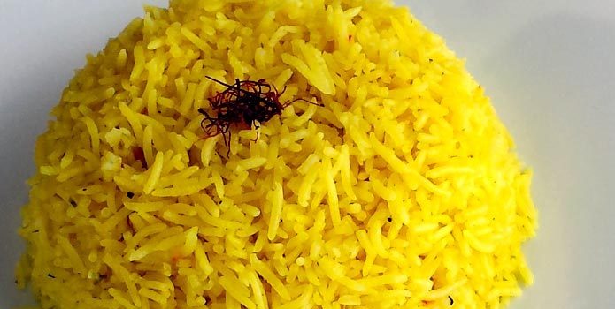 · اغسلي الأرز وصفيه جيداً من الماء واتركيه ليجف. · اطحني الزعفران مع 4/1 كوب ماء ثم احضري وعاء الطهي (سعة 3 لتر)، وضعي 2 كوب ماء ومسحوق المرق على نار متوسطة الحرارة، عندما يصل المرق إلى الغليان أضيفي خليط الزعفران...