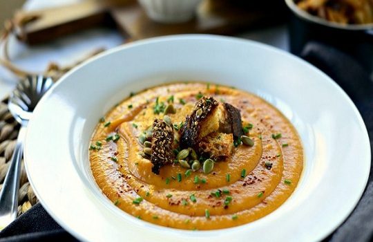 -سخني الفرن الي درجة 450 درجة مئوية .-قومي بغسل البطاطا الحلوة وتجفيفها جيدا .-ضعي البطاطا في صينية الفرن المعدنية وادخليها الفرن لمدة 30 دقيقة واكثر اذا احتاج الامر .-قطعي الطماطم والفلفل الشبوتل إلي نصفين .-قومي بتتبيل الطماطم والفلفل بزيت الزيتون...