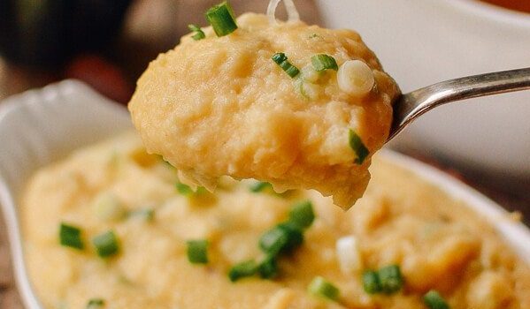 البطاطا المهروسة مع البصل الأخضر بالصور
