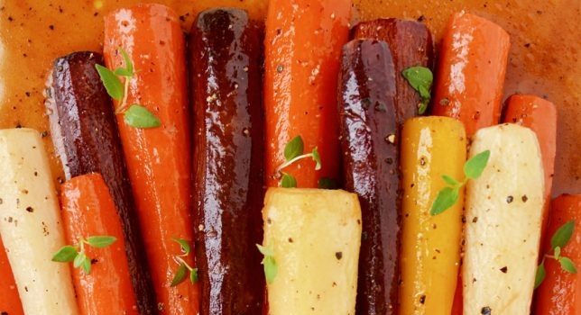· قومي بتنظيف الجزر وتقليم الأطراف. · اخفقي زيت الزيتون والعسل مع الملح والفلفل الأسود ثم رصي الجزر في صينية خبز مبطنة بورق القصدير ووزعي الصوص عليه، قلبي الجزر مع الصوص بحث أن يكون جميعه مدهون بالزيت. · ضعي الصينية...