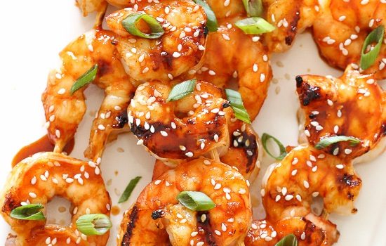 ·        أولا قومى بجمع جميع مكونات الصلصة فى وعاء صغير وقلبيهم معا بشكل جيد حتى يمتزجوا ( العسل – الكاتشاب – صلصة الصويا – زيت السمسم – الثوم – الزنجبيل ) . ·        تبلى الجمبرى بالملح ثم أدخليهم فى الأسياخ...
