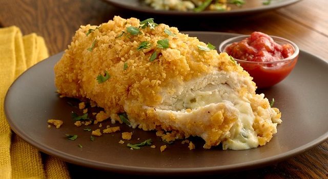 ·       اخفقي الجبن الكريمي وجبن الشيدر بالفلفل والجالابينو في وعاء صغير. ·       دقي صدور الدجاج بحيث أن تصبح شريحة رقيقة، كما هو موضح بالصورة. ·       ضعي 3/1 كوب من خليط الجبن في جانب واحد من شريحة الدجاج ثم لفيها بشكل...
