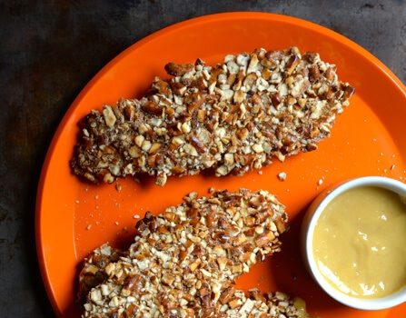 · قطعي الدجاج إلى قطع طولية، كما هو موضح بالصورة. · اخفقي البيض مع الخردل بالعسل ثم اغمسي الدجاج في الطحين ثم في البيض ثم في البريتزل. · رصي الدجاج في صينية خبز مدهونة بقليل من زيت الزيتون ثم ضعي...