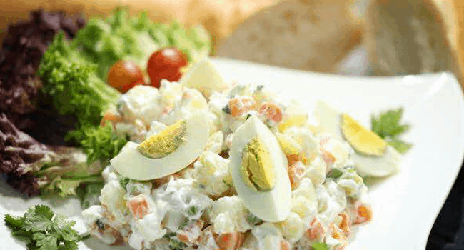 1- تسلق البازيلاء سلقة كاملة ثم تبرد 2- تقطع البندورة والبطاطا والجزر والتفاح إلى مكعبات صغيرة 3- يفرم البصل الأخضر إلى دوائر متوسطة 4- يقطع الكبيس إلى دوائر رفيعة 5- تخلط جميع المكونات بعضها مع بعض ويجب أن تكون...