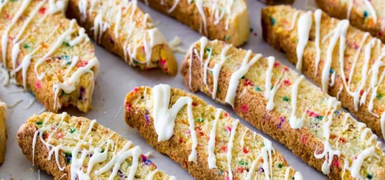 جربى تحضير البيسكوتى الإيطالى الهش بألواح قوس قزح المرحة الزاهية ويمكنكِ تزينه بالشوكولاته البيضاء المذابة كما أنه يمكنكِ إستبدال الفانيليا باليانسون إذا رغبت فى ذلك ، هذه الوصفة للبيسكوتى الإيطالى بنكهة الفانيليا واللوز وبالزبدة بدلا من الزيت يمكنكِ تحضيره سريعاً...